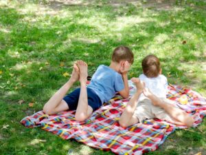 Un espace commun permet de partager de beaux moments en famille : feu de camp, repas autour des tables de pique-nique, goûters et soirées conviviales rythment le séjour.